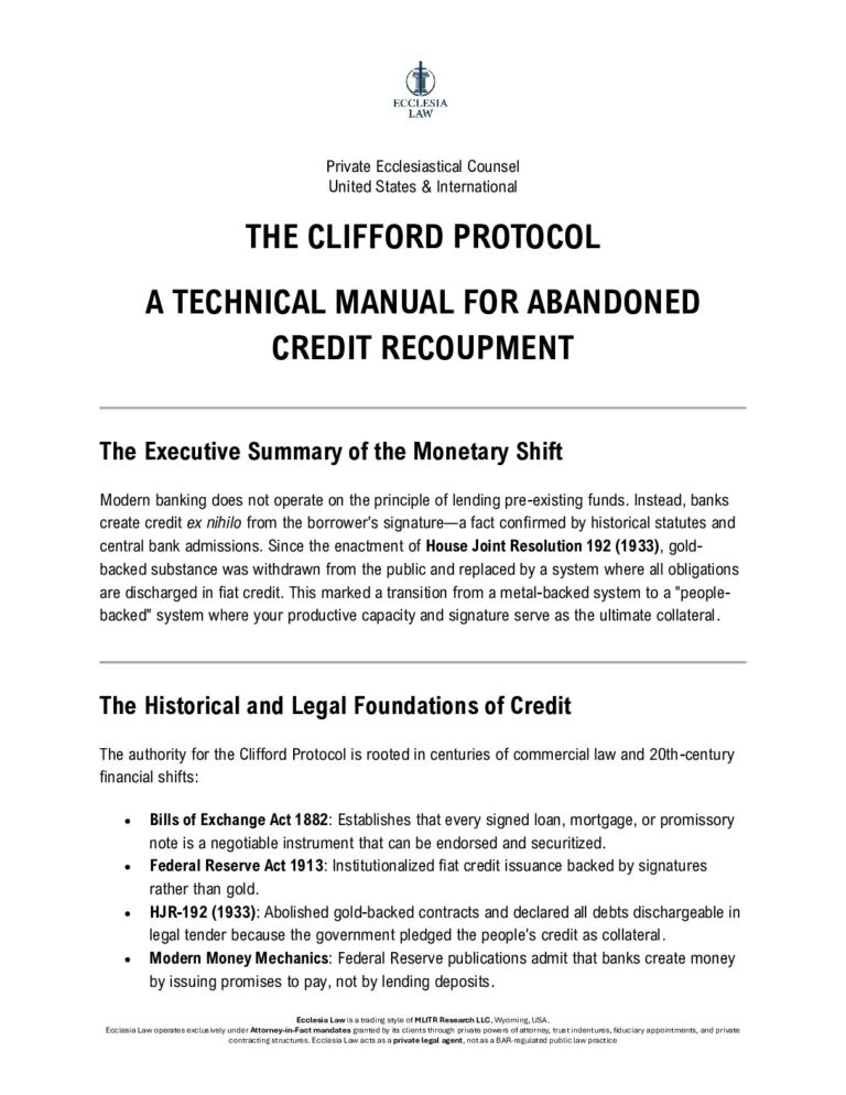 • Jurisdictional Autonomy: Reclaiming “abandoned credit energy” through the Clifford Protocol, a technical framework for the recoupment of signature credit.