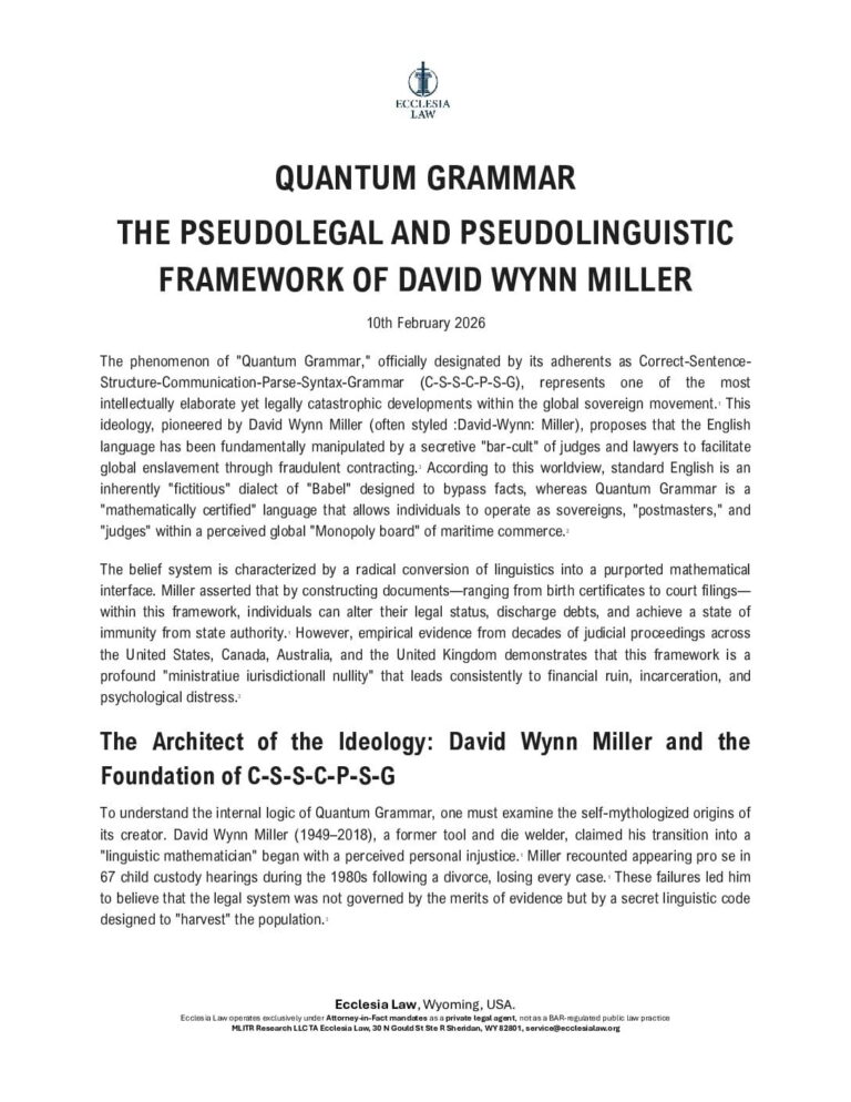Today, Clifford serves as a technical and strategic consultant for MLITR Research LLC (Ecclesia Law), authoring forensic reports that simplify complex legal and financial structures. He also acts as the Head Minister for the Republic of Old Souls (ROS), a 508(c)(1)(a) faith-based ministry and ecclesiastical trust.