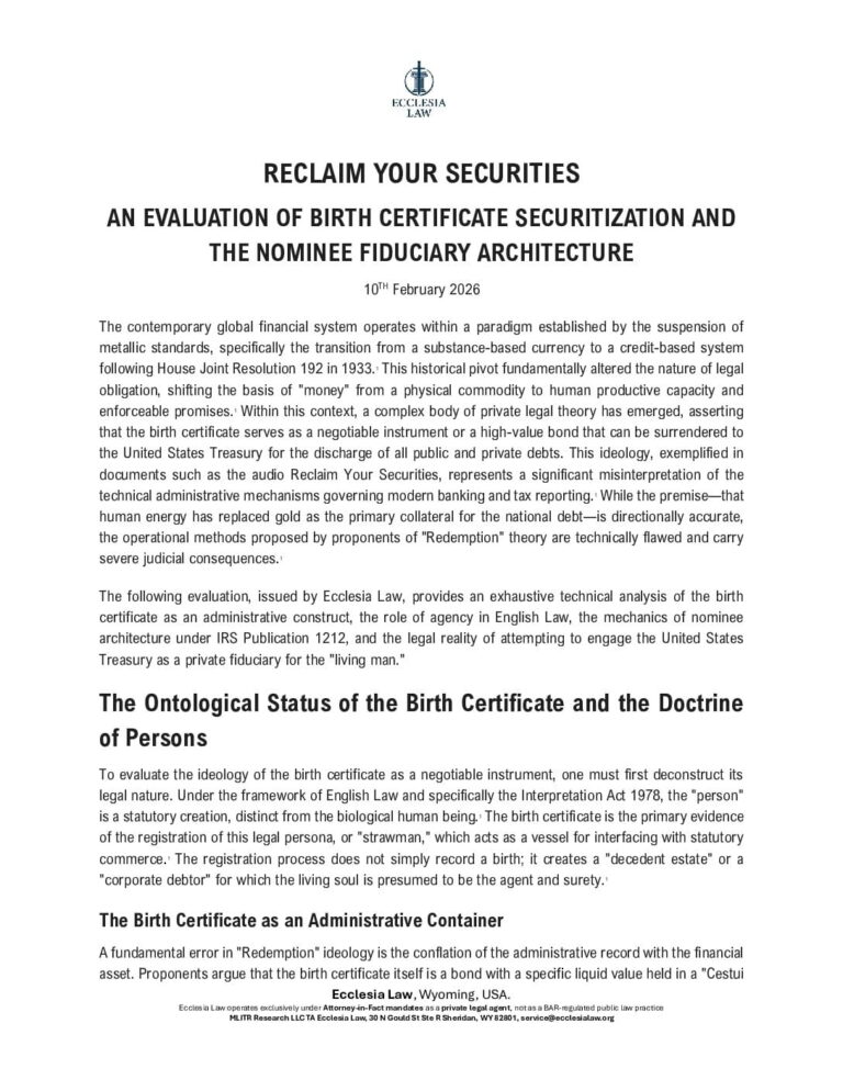 Guided by the principles of integrity, truth, and honor, Clifford is a vocal opponent of the “sovereign citizen,” “freeman on the land,” and “pseudo-law” movements. He characterizes these ideologies as “incoherent” and instead advocates for “Forensic Realism”—a rigorous, technical application of fiduciary and commercial law to navigate the global financial system. Through his ministry and consulting work, he seeks to empower individuals to operate as lawful administrators and creditors rather than liable sureties.